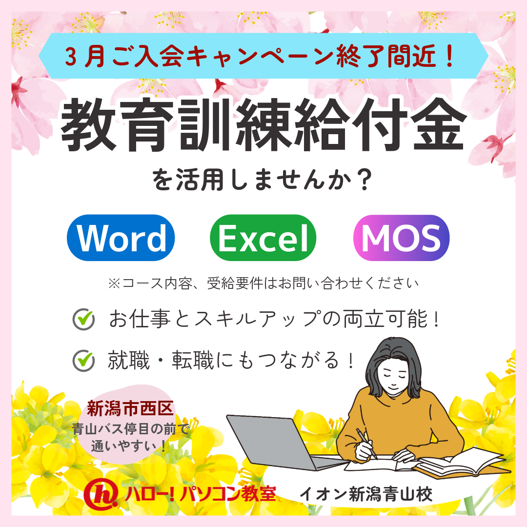【新潟市】教育訓練給付金でMOS資格取得!春のスキルアップにおすすめ【転職・再就職】